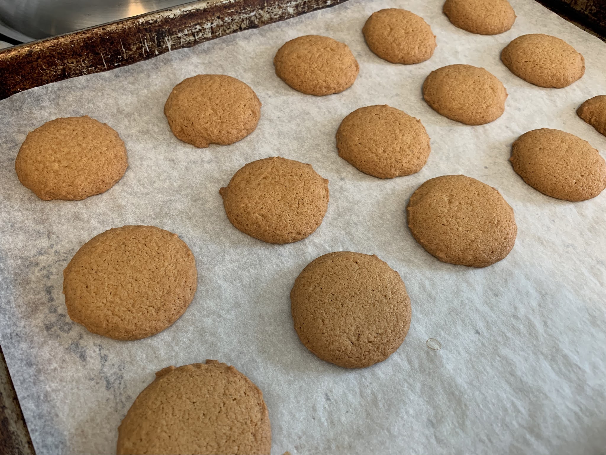 Bake your cookies at 325 F for ~15-18 minutes, until nicely golden. Too pale and they won't be nice and crispy. Let them rest on the pan for 5-10 minutes before removing to a cooling rack. Let them fully cool. Store fully cooled cookies in a tupperware container on the counter. These are good the day you make them, but we prefer to let them sit a day before eating for a real "vanilla wafer cookie" taste. Enjoy!